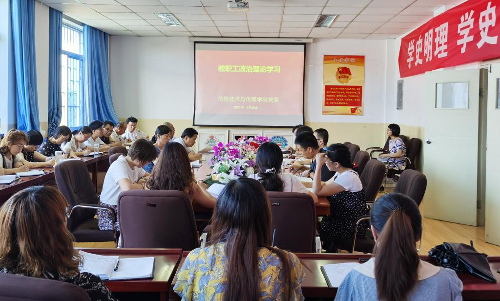 7月8日下午,太阳集团tyc539召开教职员工政治理论学习会议。会议学习了《习近平新时代中国特色社会主义思想学习问答》第三讲“初心砥柱天地间——关于中国共产党人的初心和使命”、习近平总书记在“七一勋章”颁授仪式上的讲话,再次学习了习近平总书记在庆祝中国共产党成立100周年大会上的重要讲话。
