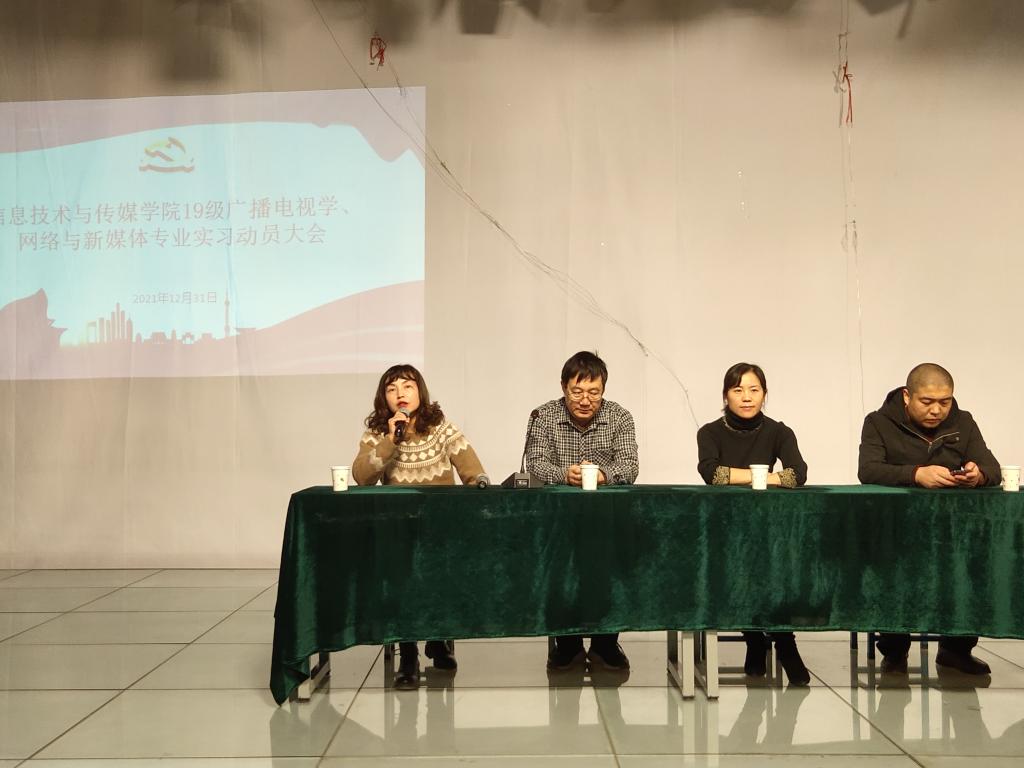 为了进一步做好员工实习工作,引导员工做好实习前的各项准备,推进实习工作的顺利开展,公司于12月31日下午4点30在信传楼三楼演播厅召开太阳集团tyc53919级广播电视学、网络与新媒体专业实习动员大会。会议由新媒体教研室主任郭炳老师主持,太阳集团tyc539副经理徐有芳老师、广电教研室主任任婧老师、李文学老师以及19级广播电视学、网络与新媒体专业全体同学参加。