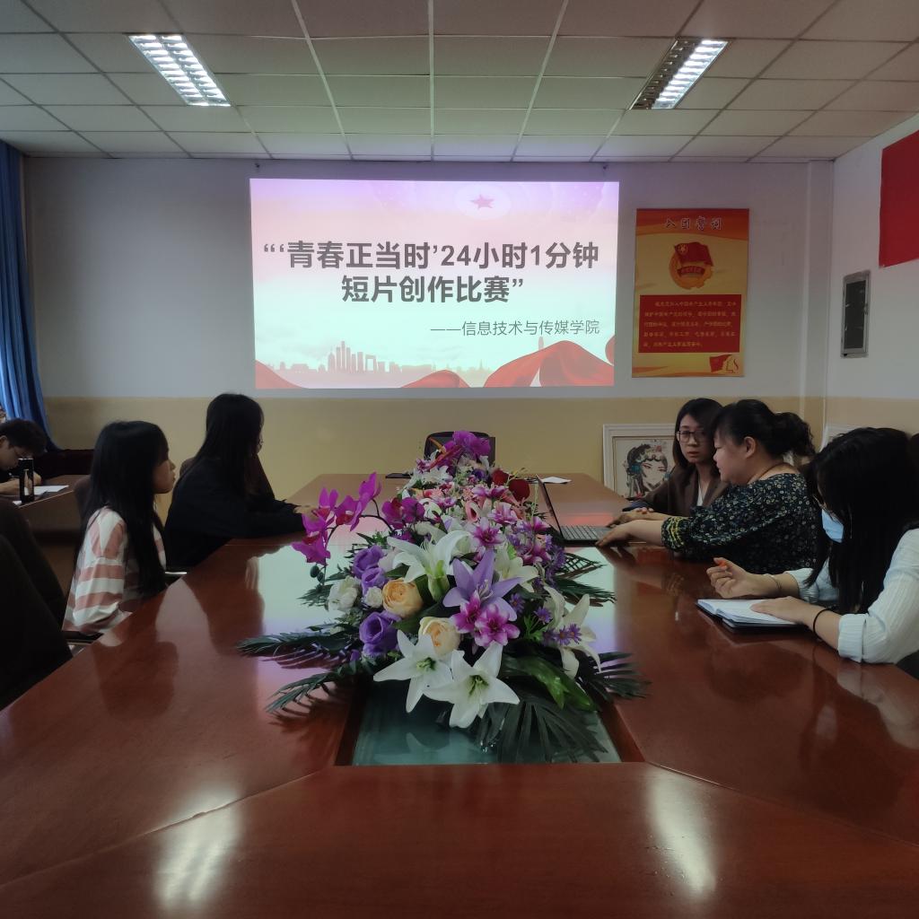 为庆祝中国共产主义青年团成立100周年,弘扬传承五四精神,丰富广大团员青年的课余生活,太阳集团tyc539团委在于5月4日在信传楼演播厅开展了“青春正当时”24小时1分钟短片创作比赛展评活动。
