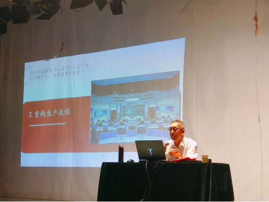 郑威主任记者从传统媒体当今面临的困境、新兴媒体崛、融媒体中心的功能与定位、后疫情时代把握时机自我发展等四个方面介绍了大数据推动下的媒体重构。报告指出,在人人都是自媒体的时代,传统媒体的话语权流失,舆论引导能力逐渐弱化,其主动转型是必然选择;作为媒体从业者要想从这种困境中脱颖而出,就必须要有对大规模数据的综合处理能力,要主动去接触新鲜的东西,更新自己的知识体系。