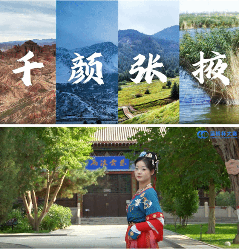 杨婷同学的作品《千颜张掖,万象风华》立足张掖深厚历史底蕴与独特自然风光,巧妙融合现代视觉语言,以多元视角与丰富色彩,艺术化呈现了张掖从古老边塞到现代新城的沧桑变迁与蓬勃朝气。该作品凭借精妙的构思、深刻的文化表达以及前沿的视觉呈现技术,在众多优秀作品中脱颖而出。