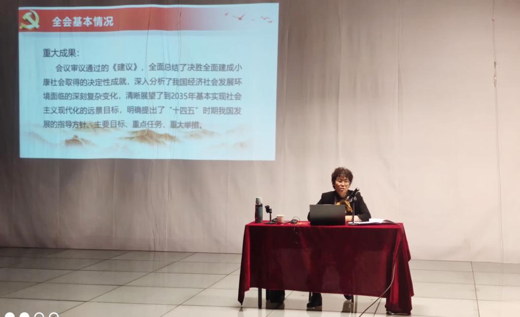 报告会紧紧紧围绕“五中全会基本情况”“全会主要精神”“牢牢把握构建新发展格局的战略构想重点着力点”“学习贯彻全会精神、推动高等教育质量发展”四个方面,对“习近平总书记重要讲话精神”“我国经济建设取得的巨大成就”“我国进入新发展阶段的重要意义”“我国建设社会主义现代化具有的重要特征”“发展环境面临复杂变化”“到2035年要实现的远景目标”“‘十四五’时期经济社会发展指导思想和遵循原则、主要目标、重点任务”和“甘肃省融入‘双循环’的路径举措”以及“坚持党的全面领导的重大意义”作了深入浅出的讲解。