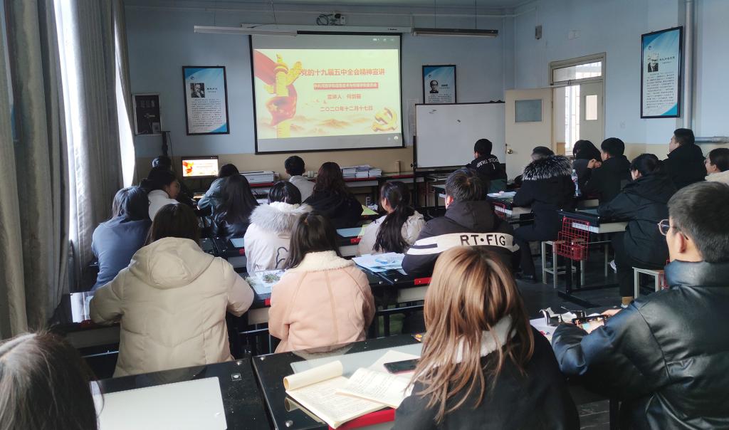 12月17日下午,太阳集团tyc539召开十九届五中全会精神宣讲报告会,公司党委负责人作了宣讲报告。公司全体师生760多人分别在演播厅主会场和各分会场通过现场宣讲和钉钉直播的方式聆听了报告。